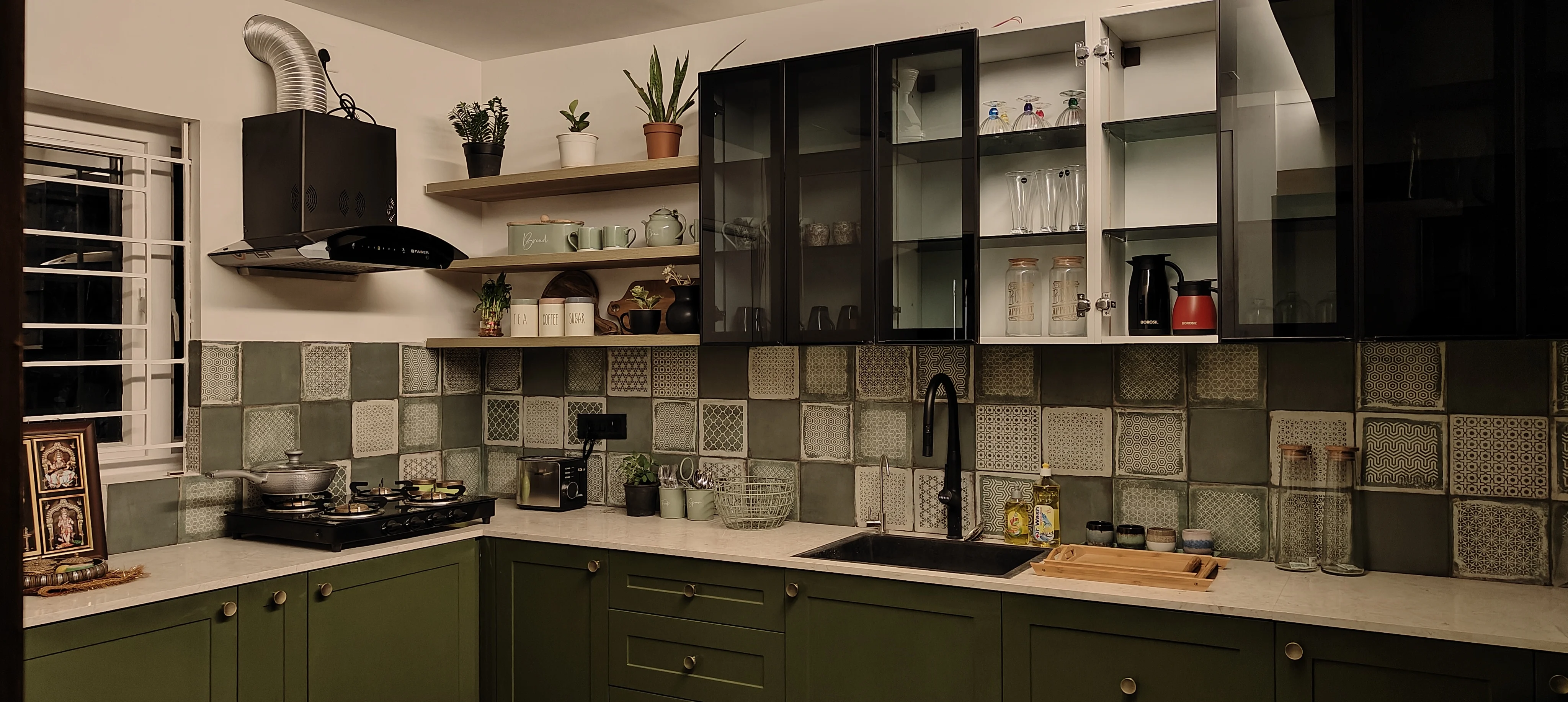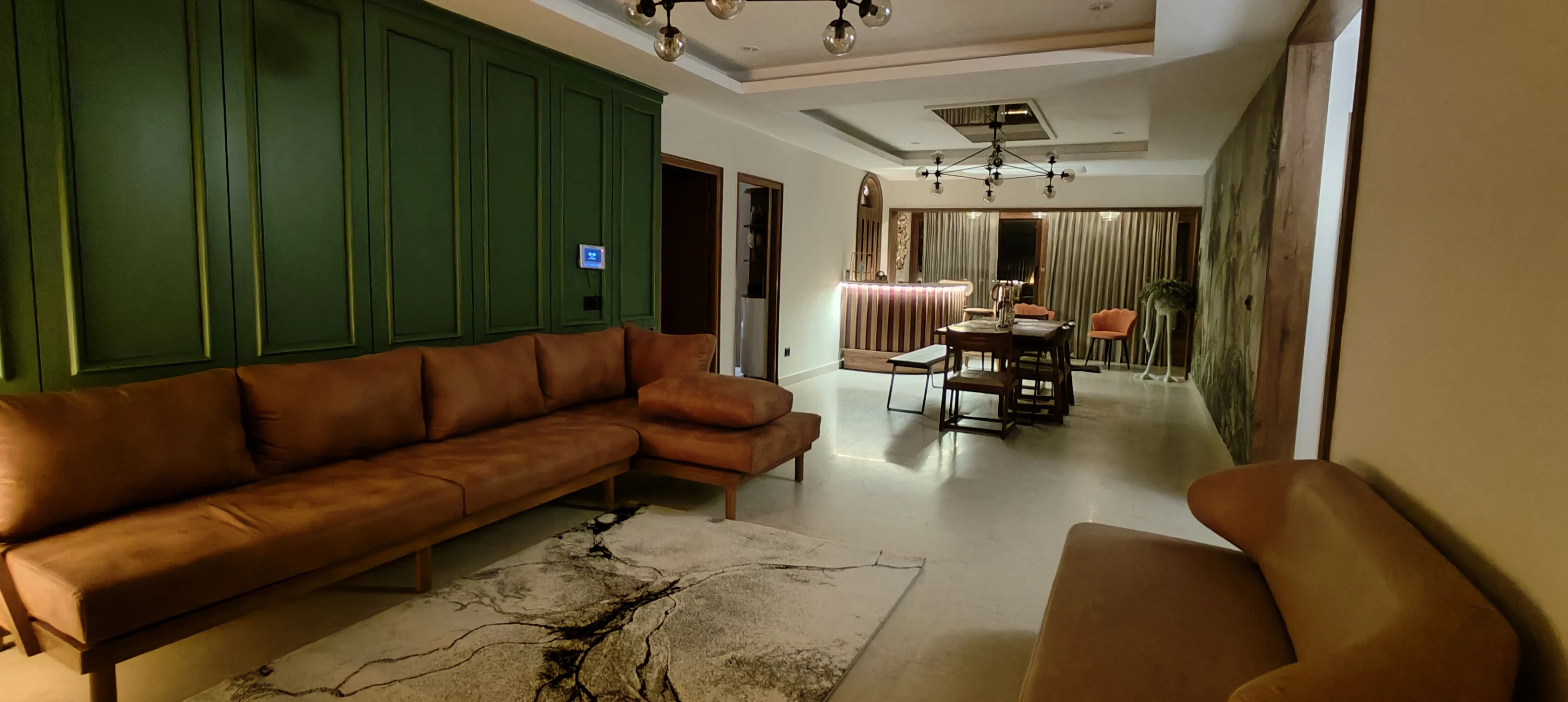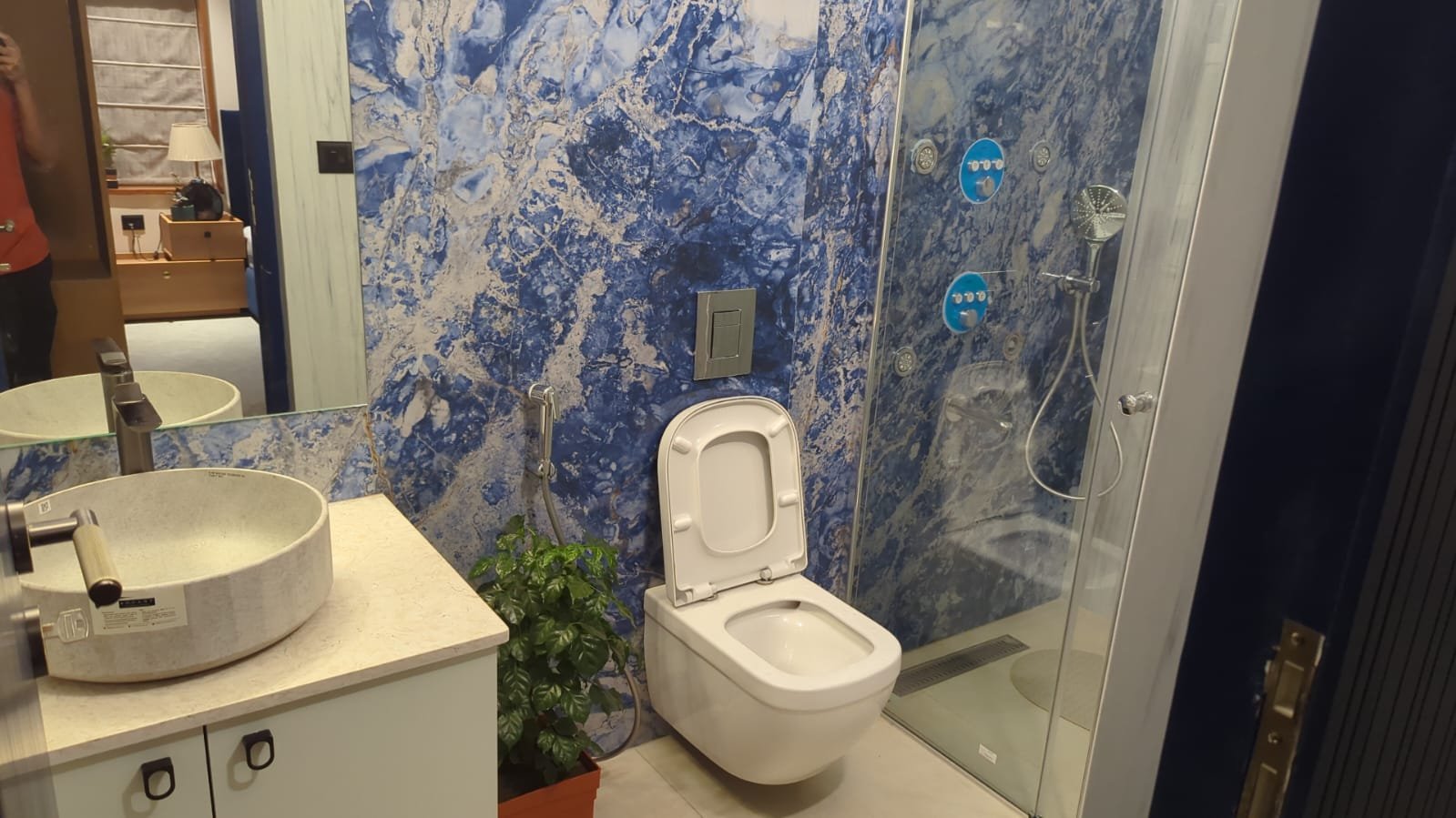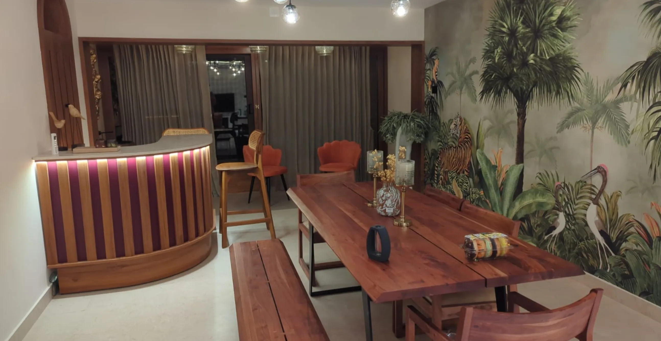 This project celebrates the fusion of materials and moods—from bold wallpapers and moody blues to natural textures and classic finishes. It’s a space that feels alive, adaptable, and full of personality.